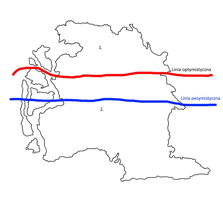 2. Wersja pesymistyczna - linia Rheinburg-Mayorhofen-Freeburg. No i teraz jak chodzi o obszary na północ i na południe od tej granicy: