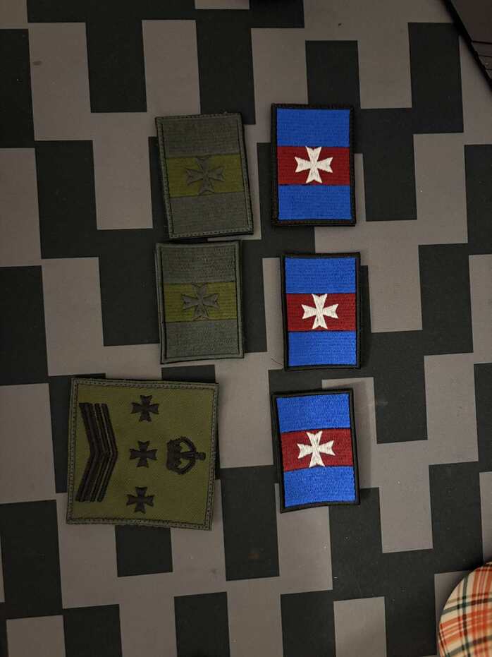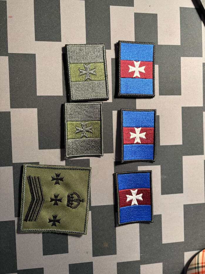 Naszywki haftowane flagi oraz stopnia wojskowego.