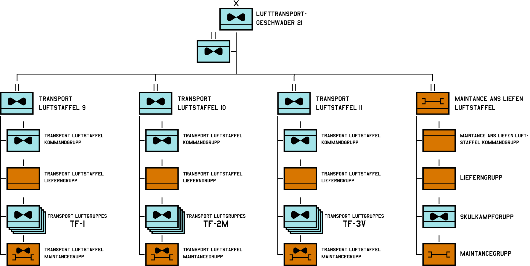 Skrzydło składa się z następujących pododdziałów:
