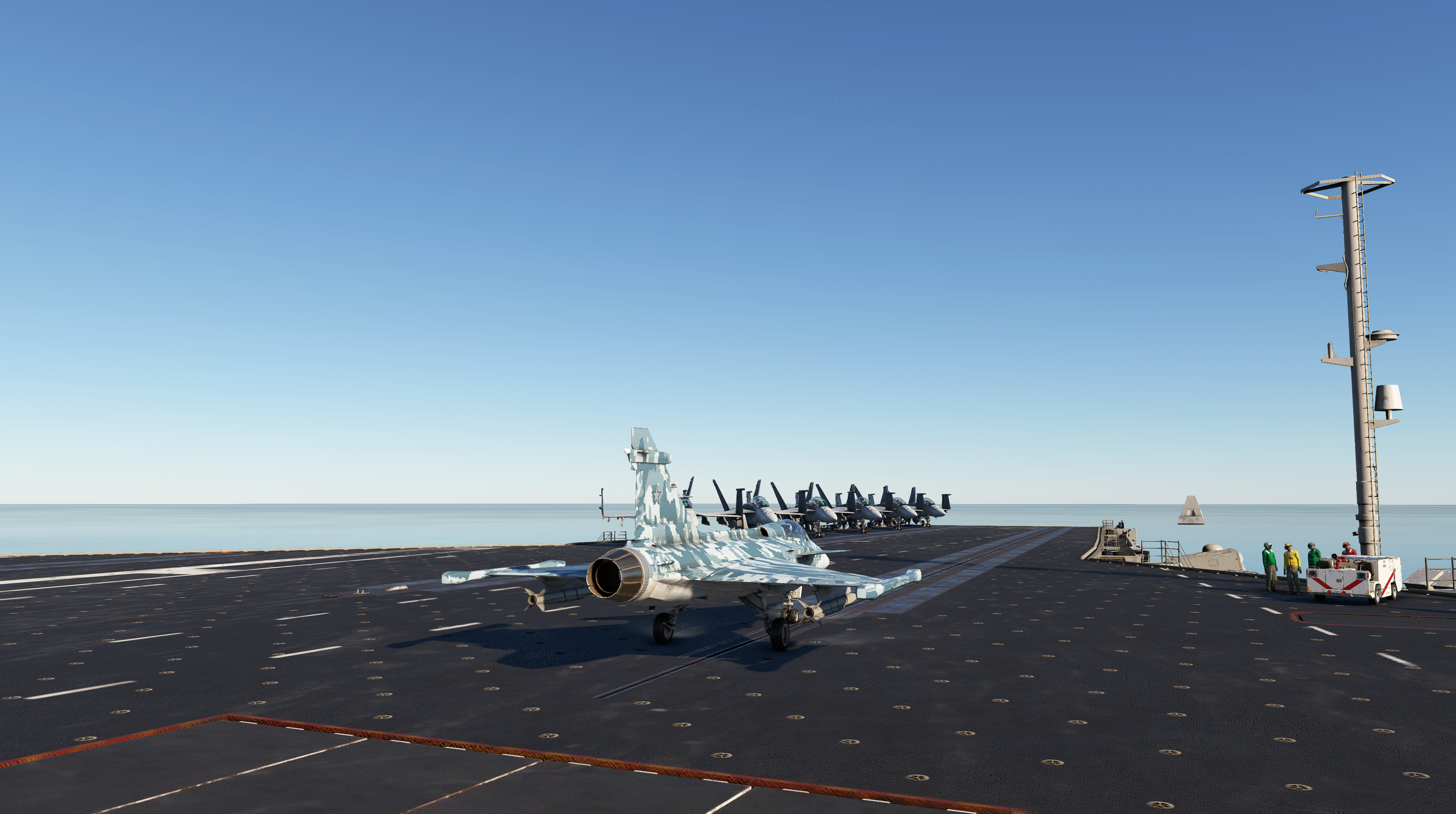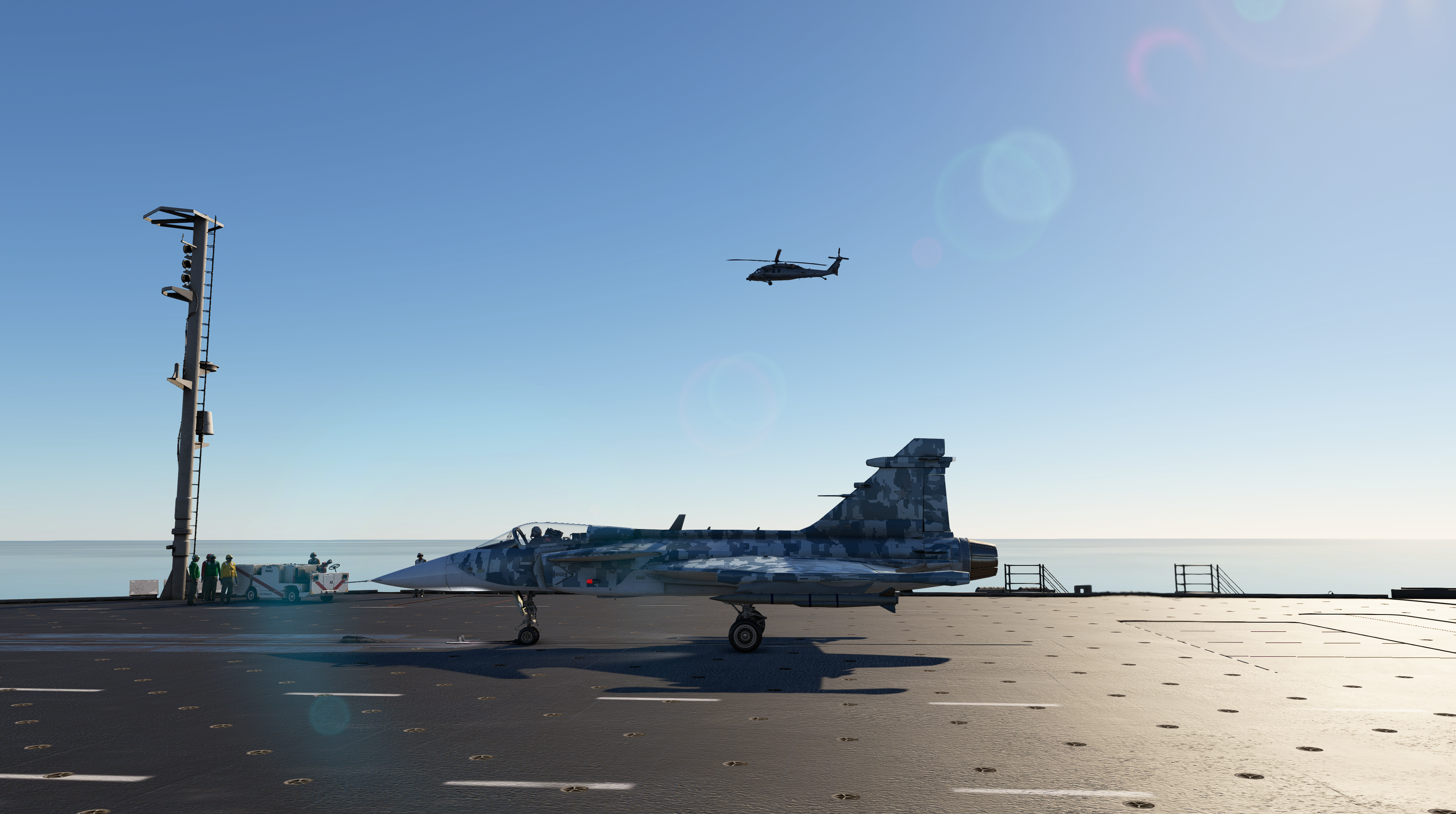 Ostatni z punktów szkolenia jest najtrudniejszy. Lądowanie oraz start z lotniskowca są specyficzne oraz zależą również od jego rodzaju. W przypadku tych wyposażonych w skocznie ważne jest odpowiednie rozpędzenie maszyny, tak by bez problemu wzniosła się ona w powietrze. Natomiast te, które posiadają katapulty cechują się dużym przeciążeniem w trakcie startu, im krótsza droga startu tym większe przeciążenie. Dzieje się tak ze względu na potrzebną siłę do jak najkrótszego rozpędzenia myśliwca. Lądowania natomiast wymagają wzięcia pod uwagę ruchomości pokładu, krótką ścieżkę lądowania oraz znacznie mniejszą przestrzeń niż w przypadku naziemnych lotnisk.