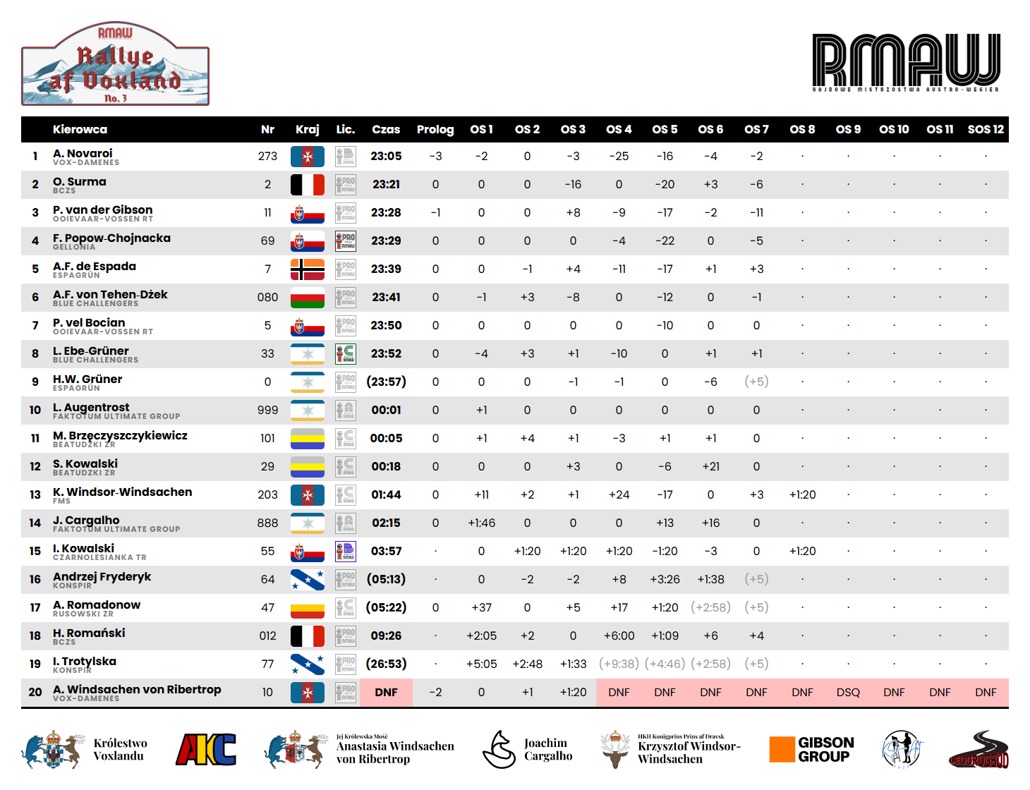 Z upoważnienia Ojca Organizatora nieoficjalna klasyfikacja na godz. 11:16: