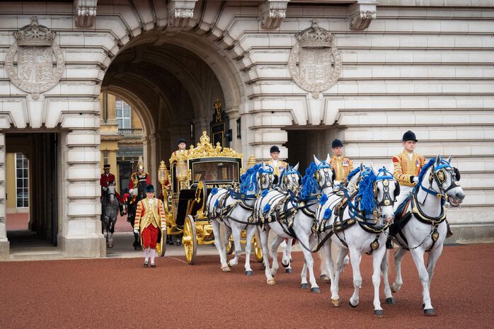 - Karoca, którą Państwo obecnie widzicie na ekranach waszych telewizorów i urządzeń przenośnych to jeden z nowszych pojazdów w królewskiej kolekcji. Korona otrzymała ją w prezencie w 2021 roku od Królewskiego Miasta Vox. Jest to też nowość w porównaniu do minionych koronacji, ponieważ zwykle Monarcha podróżował zarówno na i z koronacji w Złotej Karocy Państwowej. Jak jednak poinformował Pałac Królewski, Ich Królewskie Mości w trosce o własny komfort zdecydowały o jednorazowym użytku karocy. Wedle słów naszych informatorów podróż w niej nie należy wcale do wygodnych i przyjemnych. - mówił jeden z reporterów, zza którego pleców rozpościerał się widok na Pałac Królewski i przejeżdżającą na jego tle procesję.